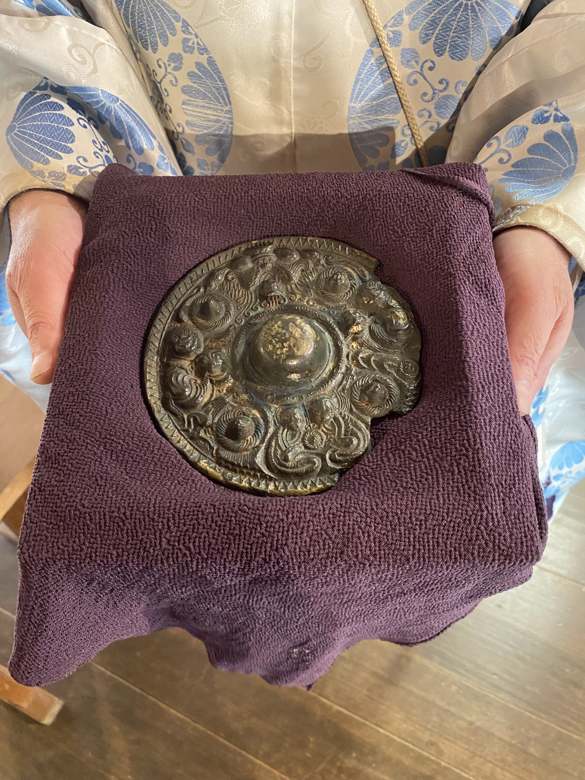 御神宝 三神二獣鏡(3世紀後半の御鏡)表裏 神主さん優しそうないい人